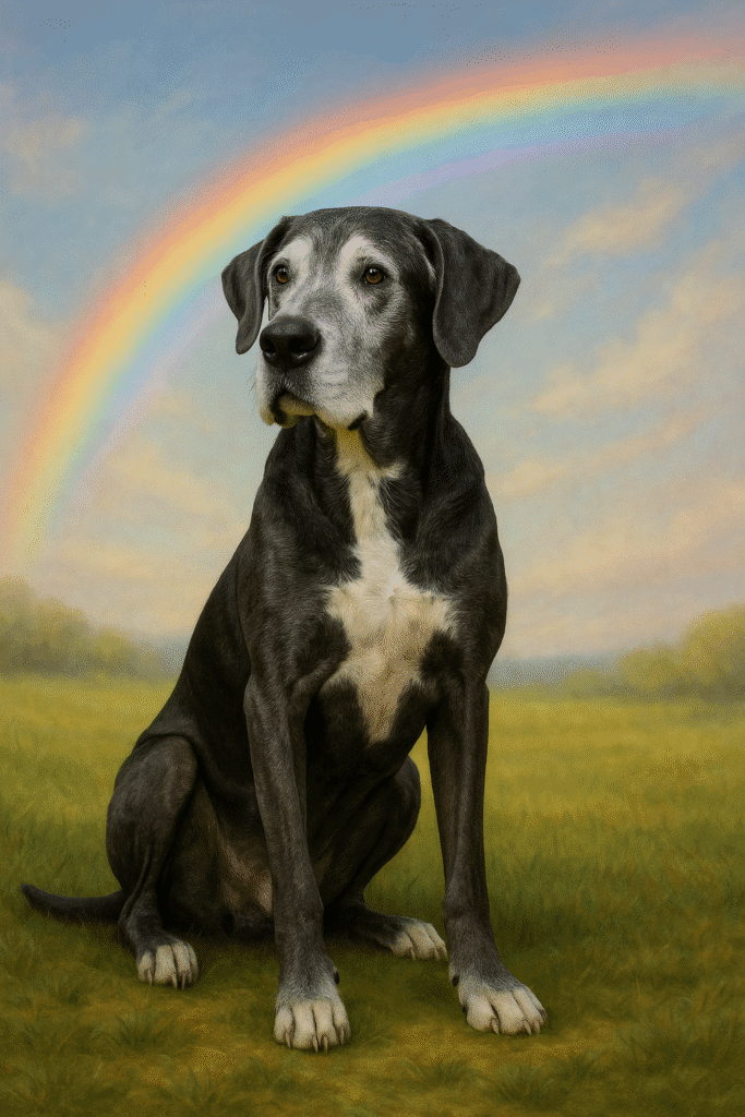 This portrait was created in loving memory of Clayton, a gentle Great Dane who recently crossed the Rainbow Bridge.